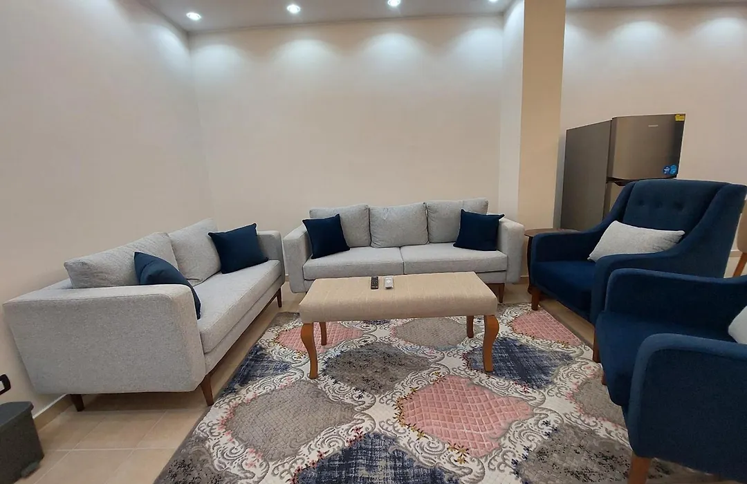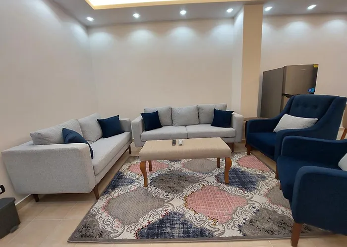 Guests can cook homemade meals in an equipped kitchenette. The apartment is 80 minutes' drive from El Giza train station.